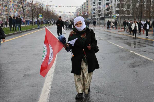 Kentte özellikle Evrim Alataş Caddesi'nde kitlenin yoğunluğu dikkati çekerken alana giriş yapmayı bekleyen kitle, yağmura rağmen bekliyor. Ayrıca kentin birçok noktasını Newroz coşkusu sararken, sokak ve caddelerden "Bijî Serok Apo" ve "Bijî berxwedana zindanan" sloganları yükseliyor.