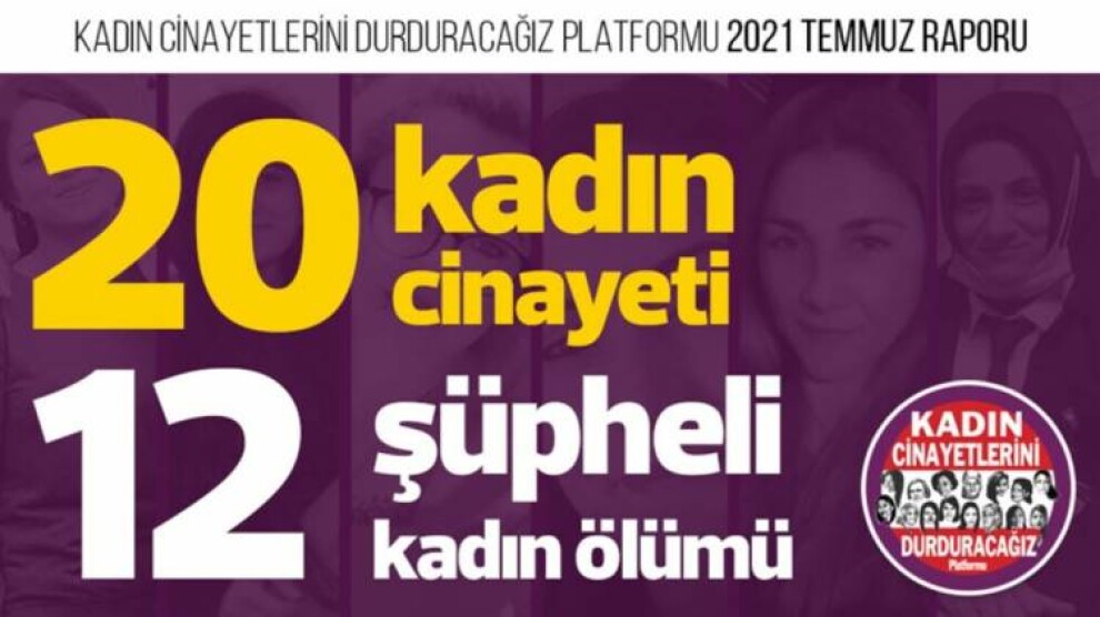 Türkiye’de Temmuz ayında 20 kadın erkekler tarafından katledildi. 12 kadının ölümü ise kayıtlara şüpheli olarak geçti.