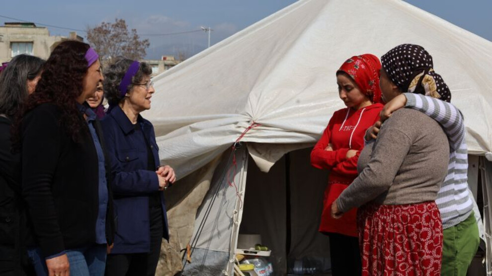 Dîlok- Tevgera Jinên Azad (TJA) ve Halkların Demokratik Partisi (HDP) Kadın Meclisi’nin öncülüğünde İslahiye kriz koordinasyon merkezinde, 8 Mart Dünya Kadınlar Günü dolayısıyla yaptıkları basın açıklamasının ardından İslahiye ve Nurdağı’ndaki depremzedeler ile buluştu.