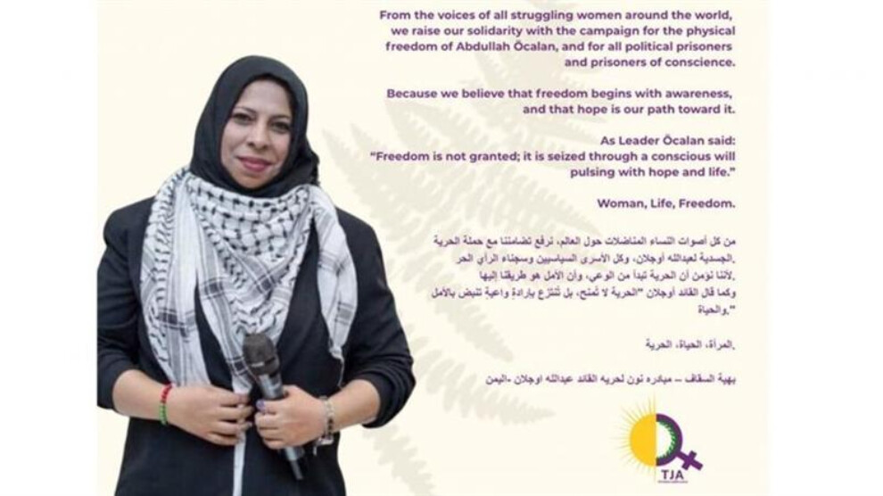 Abdullah Öcalan’ın özgürlüğü için kurulan Nun İnisiyatifi’nden Bahia Al-Saqqaf, TJA’nın yürüyüşüne destek mesajı gönderdi.