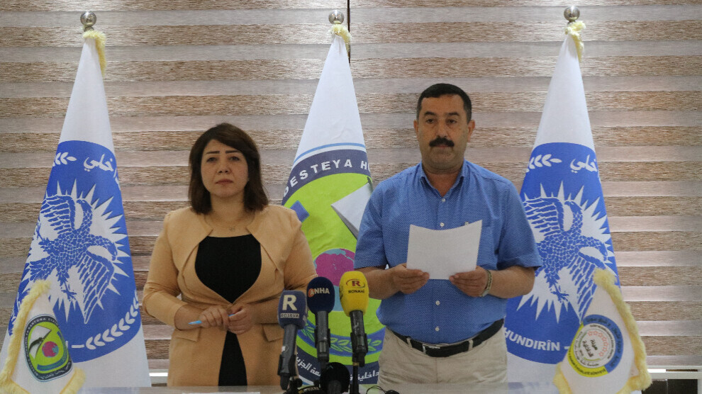 Haber Merkezi - Cizre Bölgesi Demokratik Özerk Yönetimi İçişleri Kurulu, Türk devletinin Kuzey ve Doğu Suriye bölgelerine yönelik son saldırılarına ilişkin Qamişlo’daki komite binasında basın açıklaması yaptı. Kürtçe ve Arapça yapılan açıklamayı Cizre Bölgesi İçişleri Kurulu eş başkanları Kenan Berekat ve Hemrîn Elî okudu.