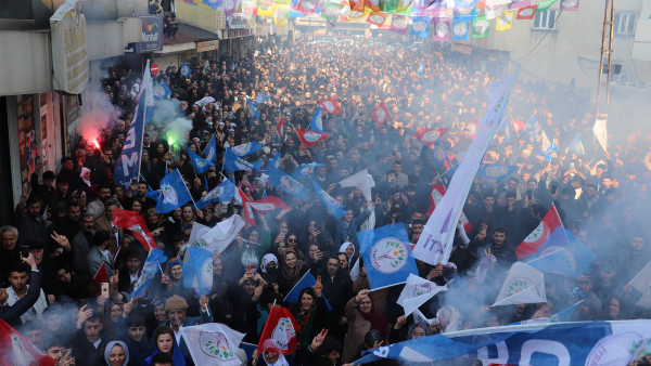 Gülbeyaz Muhçin: Halkımız çok heyecanlı. Bütün kayyımları Allah’ın izniyle göndereceğiz. Şimdi bakıyoruz bütün kayyımlar ve ekibi her yerde reklamlarını yapıyor. Bu reklamları ya da bu hizmetleri neden seçimden önce yapmadınız. Halkın parasını halka vererek oy istiyor. Şehir içi araçlarından para istemiyor. Ne olursa olsun bu halk kayyımları gönderecek. Bütün halka da çağrı yapıyorum; her kim nerdeyse oyunu kullansın. Dışarıda olanlarda buraya gelip oylarını versin. Kimse oyunu yakmasın. Bu seçim bizler için çok kutsal ve önemli bir seçim. Zafer bizim olacak. Bugüne kadar halk demeyenlere asla irademizi vermeyeceğiz. Seçim için para saçıyorlar ama biz asla kanmayız. Bu kayyımları göndereceğiz.