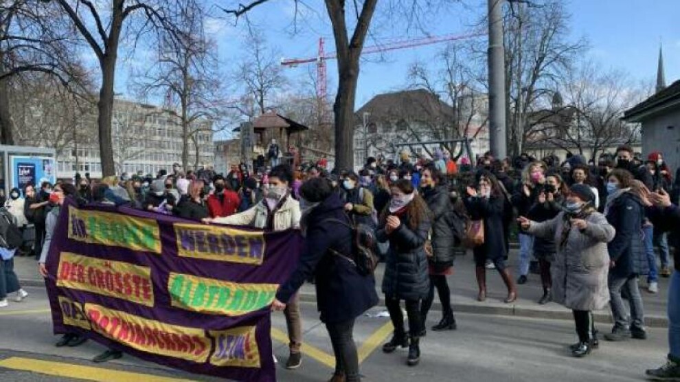 İsviçre - İsviçre’nin Zürich kentinde aralarında Kürt Kadın Hareketi ve feminist kadınların da olduğu çok sayıda kadın, 8 Mart Dünya Kadınlar Günü nedeniyle yürüyüş düzenlemek için Helvetia Meydanı’nda biraraya geldi. Yürüyüş öncesi kadınların toplandığı alan polisler tarafından barikatlarla ablukaya alındı. Kadınların alana girmesi engellenirken, kadınlar ise meydana gelen tüm yolları trafiğe kapattı. Kadınlara saldıran polis, onlarca kadını yerde sürükleyerek ve darp ederek gözaltına aldı. Polisin tüm saldırı ve engellemesine rağmen kadınlar yürüyüşü gerçekleştirdi.