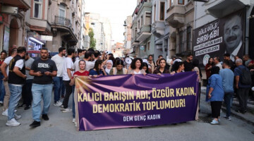 “Sosyalist yaşamda ısrar ediyoruz özgür Önderlikle yürüyoruz” şiarıyla yürüyüşleri engellenen DEM Parti İstanbul Genç Kadın Meclisi, basın açıklaması yaparak, “Barışı yasaklamakla, barışı yok edemezler. Barış bir talep değil, bir haktır” dedi.