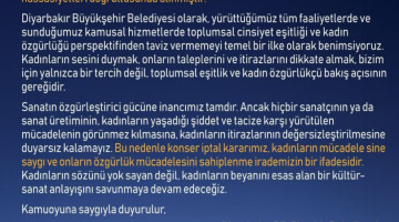 Mohsen Namjoo’nun Amed’de 20-21 Eylül tarihlerinde yapılması planlanan konseri kadınların taciz beyanları ve toplumsal cinsiyet eşitliği perspektifi gözetilerek, iptal edildi.