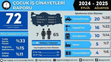 İSİG, 2024-2025 eğitim döneminde en az 72 çocuğun çalıştırıldığı iş yerlerinde yaşamını yitirdiğini açıkladı.