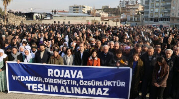 Kuzey ve Doğu Suriye’ye yönelik saldırılara karşı Nisêbîn’de bir araya gelen binlerce kişi Qamişlo sınırına yürüdü. DBP Eş Genel Başkanı Çiğdem Kılıçgün Uçar, hükümete “27 Şubat çağrısına dönün” çağrısı yaptı.