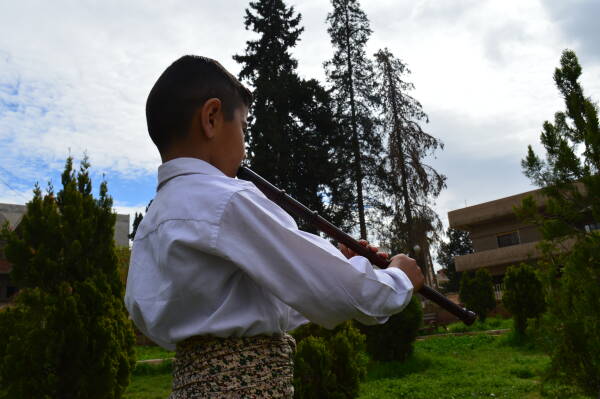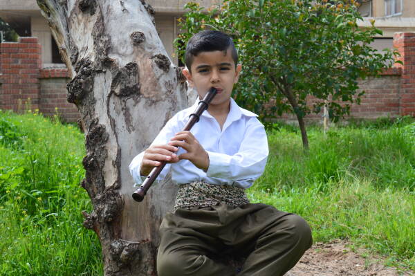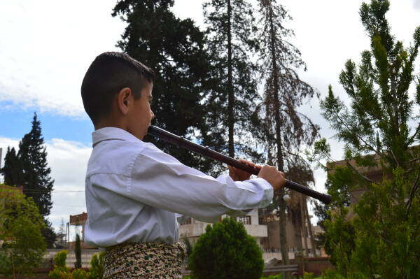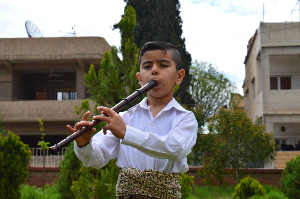Qamişlo – Qamişlo’da yaşayan 8 yaşındaki Awaz kal, Kürt müziğinde yaygın olarak kullanılan üflemeli çalgıları çalmasıyla ilgi topluyor.  Kuzey ve Doğu Suriye’nin Serêkanîyê kentinde doğan ancak Türk devletinin işgali nedeniyle Qamişlo’ya göç etmek zorunda kaldıklarını anlatan Awaz Kal, “Türk devleti Serêkanîyê’yi işgal ettiğinde ailem evden bir şey alamadı. Sadece temel ihtiyaçlarımızı alabildik” dedi.
