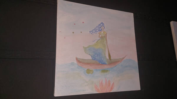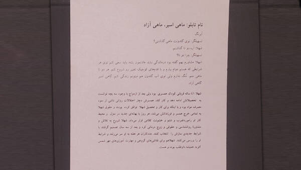 Evli olduğu erkek tarafından şiddete maruz bırakılan Mehr Shamsafrid Kadın Sığınağı’na gelen 41 yaşındaki Şahla, direnişini renklere yansıtan kadınlardan biri. İki balığın yer aldığı tablosunda özgürlük ve tutsaklık kavramlarını ele alıyor.