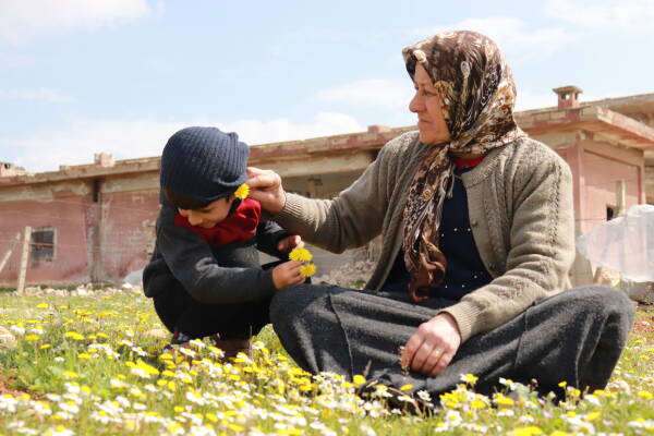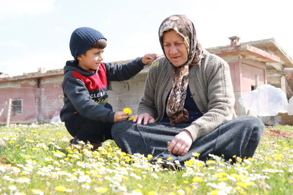 Uzun bir sohbetin ardından ayağa kalkıyor. Torununun elinden tutup yeşilliğin içinde dolanarak çiçeğin, çayırın kokusunu içine çeke çeke yürüyor.