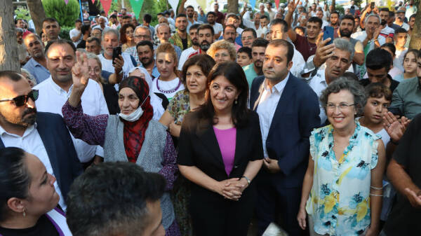 HDP’ye karşı her an davaların açıldığını söyleyen Pervin Buldan, “Biz bunu yaptığımız için, halkımızla her yerde buluştuğumuz, bu ülkenin halklarına, Türkiye toplumuna adalet sözü verdiğimiz için,barış, demokrasi sözü verdiğimiz için her gün iktidarın hedefindeyiz. Bizimle sandıklarda baş edemeyenler, siyaseten baş edemeyenler, önümüze kumpas davalarıyla çıkıyorlar, saldırılarla, hakaretlerle çıkıyorlar. Her gün siyasi soykırım operasyonları ile il ve ilçe örgütlerimize yapılan saldırılarla, inkarla Kürt sorununu çözmeye çalışanlar bilsinler ki, Kürtler bu ülkede yüzyıllardır var olan ve bundan sonra var olacak olan bir halktır. Demokratik siyaseti savunan, bu ülkede yaşayan tüm kesimlerin, inançların, farklı mezheplerin, farklı dinlerin ve dillerin sorunlarını kendi sorunu gibi gündemine alan HDP’ye her gün kumpas davaları açıyorlar” şeklinde konuştu.