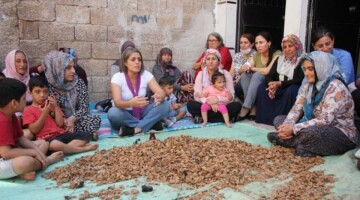 HDP Kadın Meclisi, Antep’te kuru üzüm posası ayıklayan ve ceviz kıran kadınlar ile bir araya geldi. Kadınların yaşadığı zorlukları Meclis’e taşıyacaklarını belirten Ayşe Acar Başaran, “Devlete sorarsanız eğer toplumun her kesimi refah içerisinde, ancak bizim sokaklarda, tarlalarda ve fabrikalarda gördüğümüz tek şey yoksulluk" dedi.