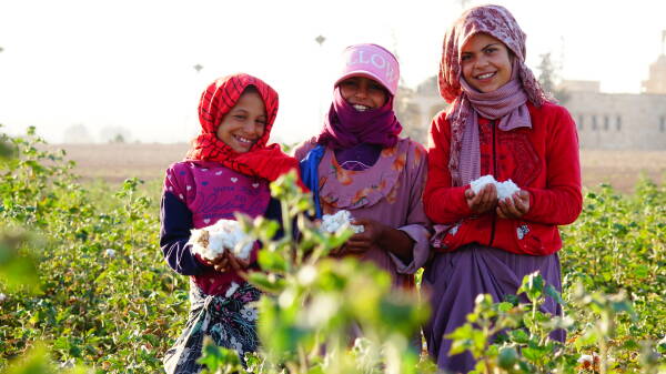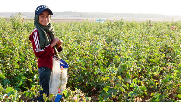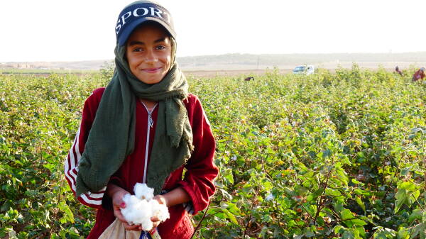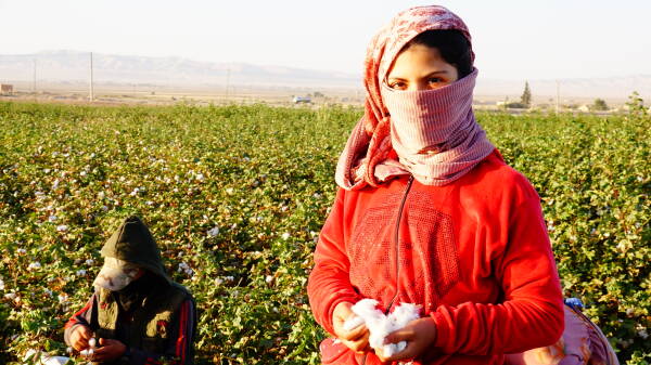 Tarlalarda çalışan yerlerinden göç ettirilen kız çocukları, her gün yaklaşık 14 saat boyunca durmaksızın pamuk topluyor. Henüz oyun çağındaki bu çocuklar, yaşamın zorluklarını omuzlarında taşıyor. Kırmızı eşarbıyla saçlarını örtmüş, esmer yüzü güneşin altında bir gül gibi parlayan 9 yaşındaki Rewan Ebdilhemîd, avuçlarına doldurduğu pamuklarla kameralara yakalanıyor. Dudaklarındaki hafif büzülme, sessiz bir mesaj taşıyor: Türk işgali nedeniyle çocukluğunu yaşayamamış, göç etmek zorunda kalmış ve okulunu bırakmış bir çocuğun mesajı bu.